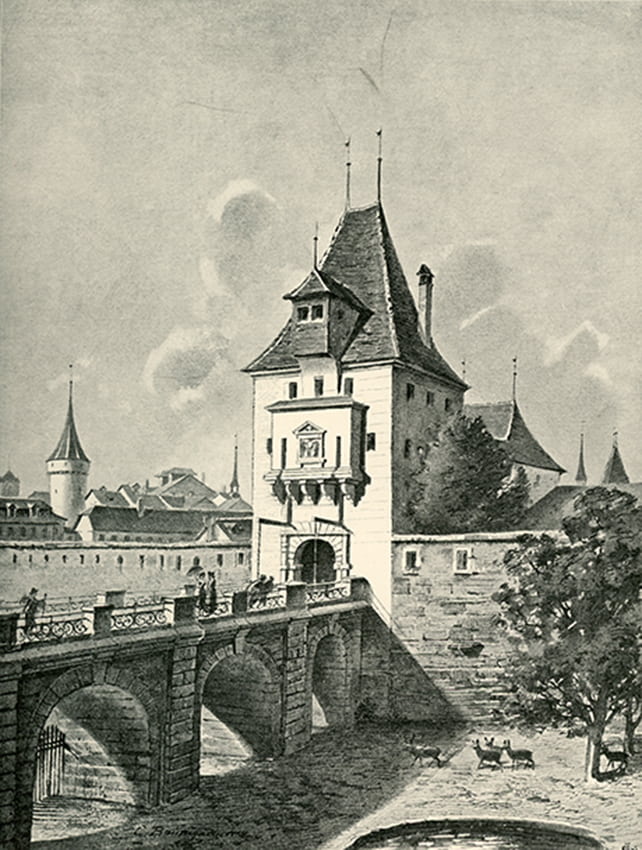 Graben vor Stadtmauer mit Brücke